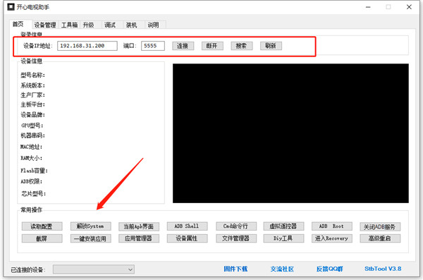 3、接着可以开始通过设备IP地址进行设备连接,完成设备连接后点击常规操作功能可以对连接的设备进行功能使用