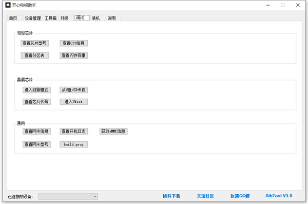 7、点击调试按钮可以对海斯芯片以及晶晨芯片进行调试