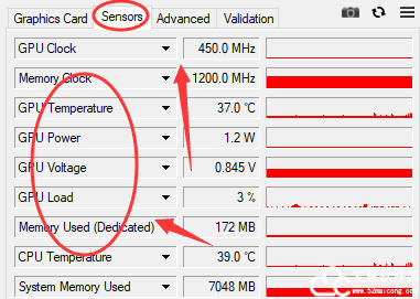 2、点击传感器就可以看到显卡的频率以及显存频率等。