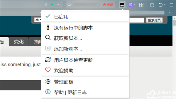 6、油猴脚本官方版能够非常方便的管理你的脚本,软件的图标上会显示正常运行的脚本数量,点击图标就能够知道正在运行的脚本和当前页面上的脚本。