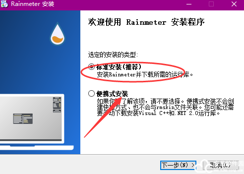 4、进入到安装向导后,勾选标准安装,点击下一步。