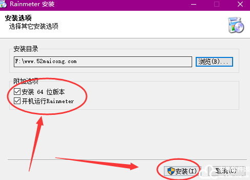 5、选择Rainmeter中文版安装的位置,默认是系统盘,用户可以修改至其他的磁盘。