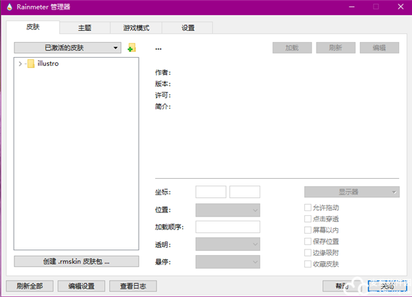 Rainmeter中文版的体积非常的小巧,不会占用电脑很多的存储空间,并且软件中还有着非常实用的功能,就比如游戏模式等,可以满足大部分用户的使用需求了。
