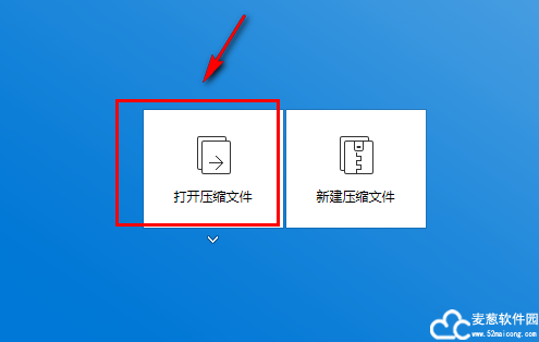 1.打开软件之后,选择“打开压缩文件”这个选项,之后软件会自动跳出一个弹窗。我们将所需要进行解压的文件选中打开。
