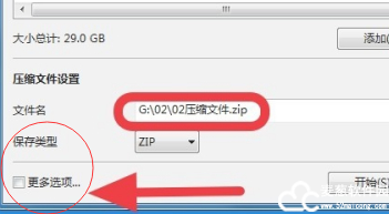 在确认完成文件名字路径和格式后,点击下方的更多选项。之后窗口将会展开来,我们在下面找到输入密码这个选项。