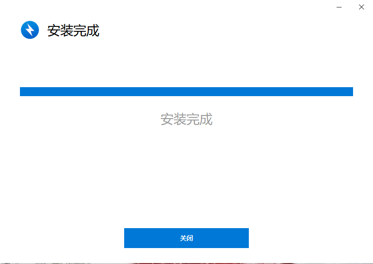 2.缓冲完毕后,界面显示“安装完成”,点击“关闭”