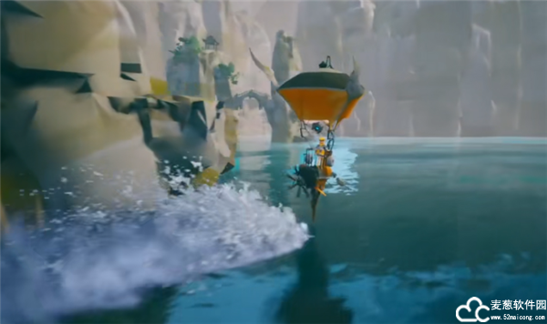 8、如果玩家降低飞艇的高度,划在水面上的话,会产生水浪。
