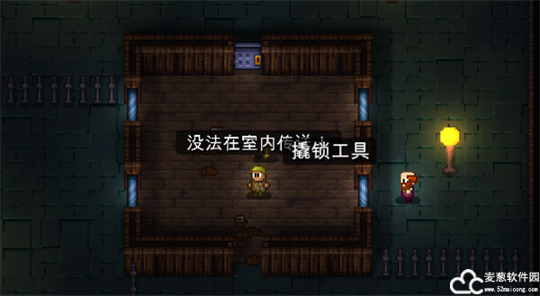 3、打开宝箱后就等到了一把撬锁工具,并且在室内是无法传送的。