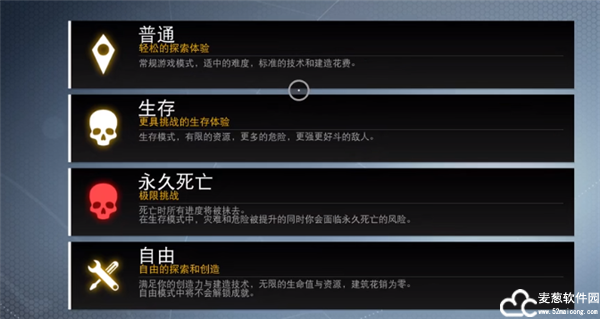 4、新建一个存档后,需要选择游戏的难度,有着四种模式可以挑选。