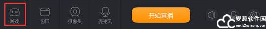 3、进入主界面,软件下方工具栏需要根据自己的直播内容进行添加,这里为大家介绍的是游戏直播,点击游戏。