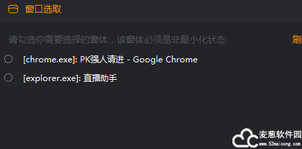 6、弹出一个窗口选取界面,选择你要添加的游戏窗口,点击“确定”即可。