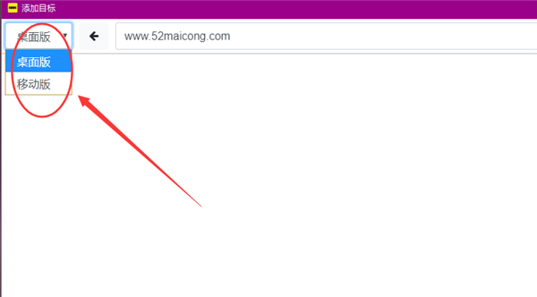 4、在新建目标中,用户可以选择是添加桌面版还是移动版。
