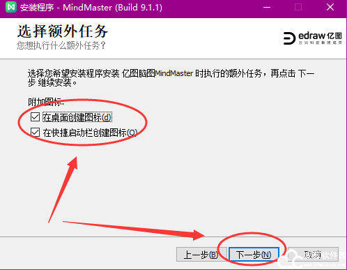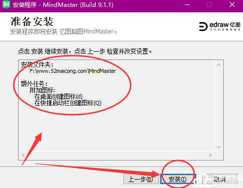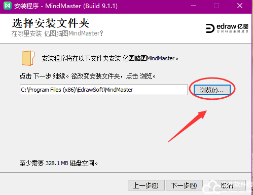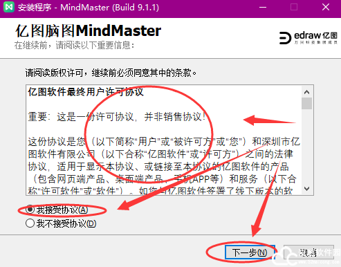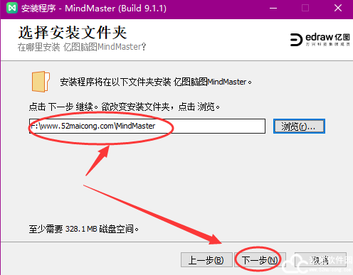 7、设置好MindMaster电脑版安装的位置后,点击下一步。