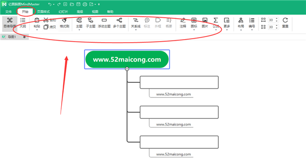 4、点击开始选项,就可对MindMaster电脑版的主题进行编辑,并且还能够插入图片。