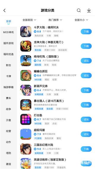 4、游戏分类:根据游戏性质分为不同的游戏版块,用户可以根据版块挑选自己想要玩的游戏;