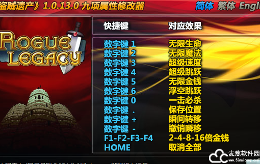 盗贼遗产2修改器风灵月影版是一款非常好用的辅助型软件,它可以帮助我们快速了解、掌握游戏,里面有着无限生命、无限魔法、超级速度、超级跳跃、无限金钱等功能,并且还都非常的实用,作为一款动作冒险类的游戏,其本身的战斗手感极佳,动作非常流畅,难度方面也不是很复杂,在打boss的时候注重对节奏的把握以及跳跃时机的把握就可以应付的来,其地图也不是随机的,而Roguelite的设计,可谓是通关才算游戏开始,盗贼遗产2也是如此,它提供了没有上百个小时刷不完的可升级项目,多周目增加的新boss,以及几乎无尽的大秘境挑战,只要你想刷,那它绝对能够一直陪伴你,所以这时候修改器的作用就体现出来了,其本身的功能,可以让我们直接无视操作,一路莽就可以了。