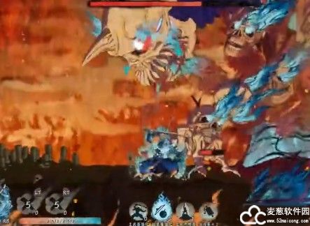 1、这是两头boss,并且分别在两侧,会进行换位的攻击,我们盯着一边打就行,小编就是先打的青鬼