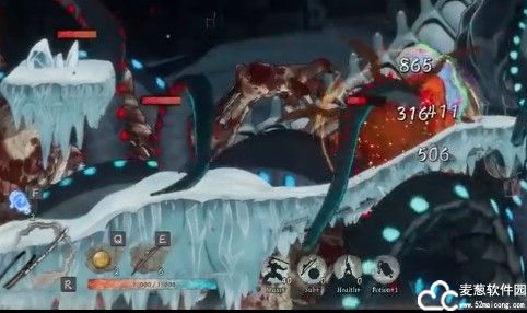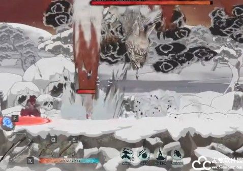 3、当看到boss这个动作的时候,就要注意跳跃了,它会发射一个巨大的光球,产生爆炸伤害,范围会波及到整个x轴