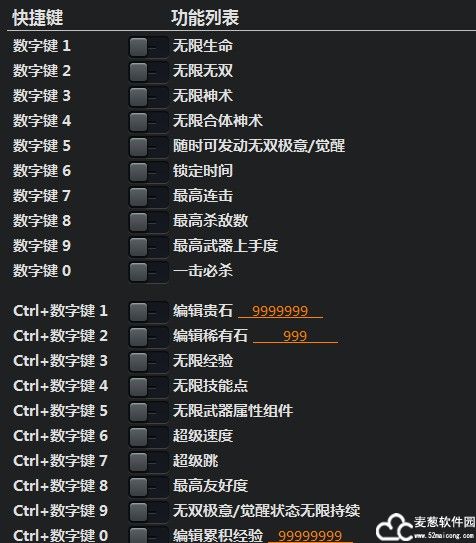 Ctrl+数字键9-无双极意/觉醒状态无限持续