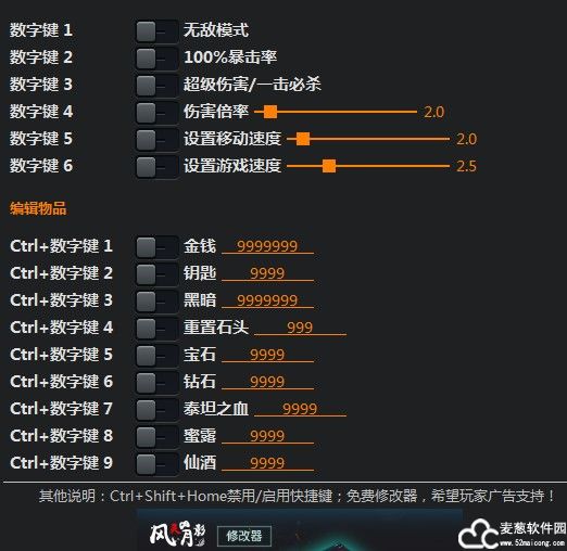数字键1-无敌模式