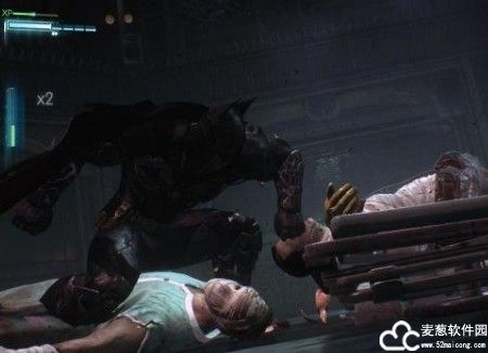 而对付猪面人就比较简单,当与其他病患战斗的时候,猪面人会向蝙蝠侠投掷飞刀,按鼠标右键就可以进行反击,然后对猪面人所在的手术桌发动环境攻击,就可以击退猪面人。