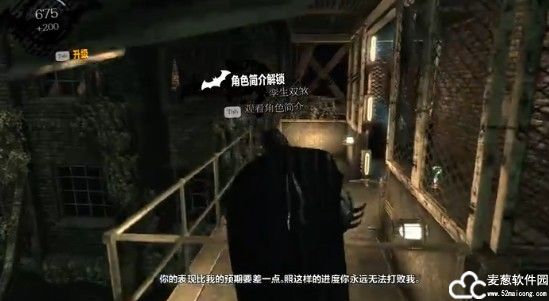 3、蝙蝠侠阿卡姆疯人院,体验一把当蝙蝠侠使用蝙蝠镖、喷雾剂、蝙蝠爪,声纳、缆线发射器时的感受。
