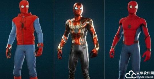 三套蜘蛛侠战衣,其中钢铁战衣和电影中的战衣一样,可以从背部伸出4只爪子