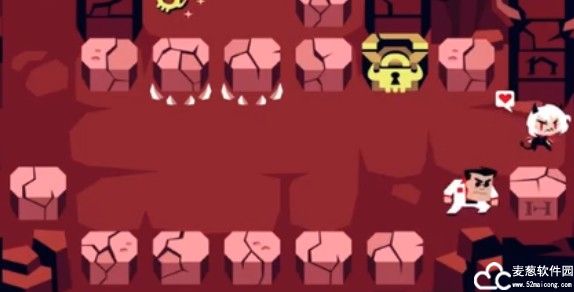 地狱把妹王中文版是一款非常好玩的动作冒险游戏,同时它也是一款免费的,游戏时长比较短,但是过程非常的有趣。玩家将在里面扮演一个壮汉,通过闯关的形式,去找到分布在其中的妹子恶魔们,然后带上她们,加入你的队伍,虽然是加入了队伍,但是我们并不能去操控这些妹子,只有主角可以操作,就是收后宫一样,也非常符合游戏的名字了。地狱把妹王整体上更像是小时候玩过的那种推箱子游戏,采用的俯视视角,总共有十个关卡,2D画面效果,唯一的不好之处在于它的地图没有入口也没有出口,所以整个地图看起来会显得比较小,而玩家通关后也会自动的进行跳转,每个关卡都会显示在右下角,玩家如果想知道自己在第几关就多多看看右下角吧~前面也提到了它的玩法本质,听起来非常的简单,可真操作起来还是非常考验你的计算能力的,就因为它里面加入了一个限制-步数,也就意味着玩家需要在规定的步数之内到达恶魔妹子身边才行,而地图之中又存在无法被破坏掉的石头,所以在行动之前一定要将路线都合理进行规划。地狱把妹王中还有怪物的存在,玩家可以和推石头一样,推动这些怪物,如果是在没有退路的情况下再次推动怪物,就能够顺利击杀他们,可以看作是易碎的箱子,在通过一系列的解谜之后,我们到达了恶魔妹子身边后,还有需要选择正确的对话选项,如果选错了,就又得重新开始,那么就祝各位小伙伴好运了。