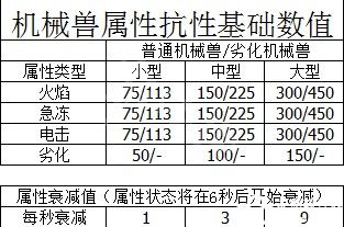 不同体形的机械兽拥有不同的属性抗性基础值,并且不同形体的机械兽也会有不同的衰减值。