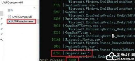 4、启动游戏,等待加载完毕到主界面,打开解压后的Injector.exe,寻找“Dungeons.exe”,然后输入左边的数字,等待DUMP完成,之后会弹出一个目录窗口,将里面的文件复制你想作为安装目录的地方。
