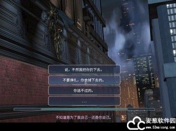 1、经过一段简短的剧情,我们看到布鲁斯准备牺牲自己保证城市的安全,这时候选择第三项