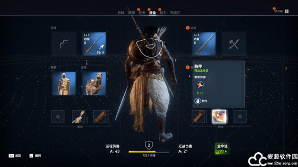 3、而胸甲的升级就在“装备”页面之中,按下TAB以进入这个界面,点选右下角的胸甲之后,长按进行升级。将胸甲升级到下一个等级,即可完成本次任务。
