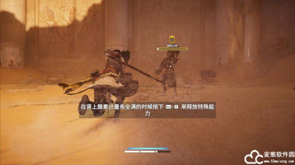 4、当肾上腺素计量条(位于血条上方的蓝色槽)蓄满之后,按下Shift+F即可释放特殊能力。在本次战斗之中,这一“特殊能力”为高伤害的冲锋终结技。