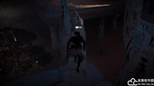 钻过暗门后进入神殿内部,按1掏出火炬提供照明。进入之后的一段路直接往前进行攀爬。