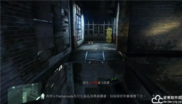 11、穿过一系列障碍物走到2楼有断桥,按住“space空格”键不动进行纳米服能量的超级跳跃来越过断桥。