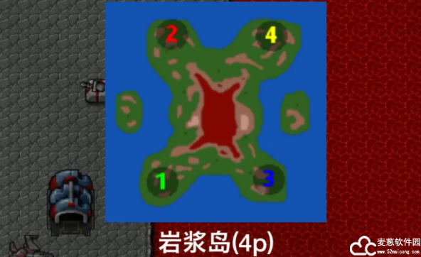 地图的陆地大小,海域大小,岩浆,地形等因素均会影响各种兵种的发挥能力。地图类型主要有这几种: