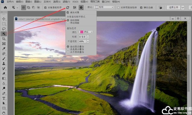 使用这个工具时,PS会自动查找图像上边缘清晰的对象,如天空、地面、水、河流、人、车等,将对象选择工具悬停在这些对象上的时候,就会自动选择。
